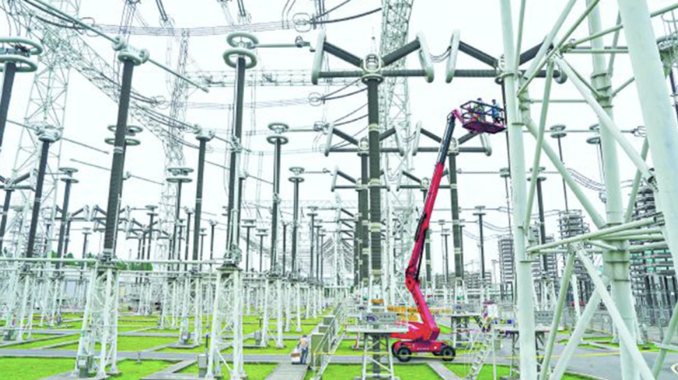 10月20日,安徽送变电工程有限公司检修人员在古泉换流站进行检修作业。10月17日至10月23日,准东—皖南±1100千伏特高压直流输电工程的受端站——安徽宣城古泉换流站迎来年度停电检修。该工程起于新疆昌吉换流站,止于安徽古泉换流站,是目前世界上电压等级最高、输送距离最远、输送容量最大的输电工程。 新华社记者杜宇 摄