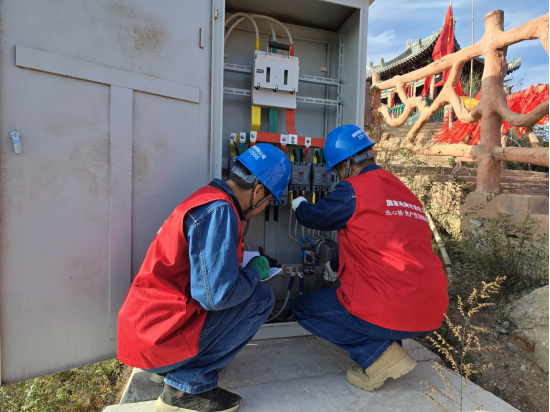 为确保景区电力设施安全可靠运行,以最佳状态迎接冬季旅游小高峰,国网西和县供电公司主动对接景区管理部门,详细了解景区用电需求和需要解决的问题,组成由党员和业务骨干组成的供电服务工作小分队开赴云华山,开展设备巡检、用电检查和安全用电宣传服务。队员们手持检测仪器、肩挎工具包,穿行在蜿蜒陡峭的山路和游客步道,仔细检查每处配电箱,对电缆头、断路器、铝排、分线开关等设备和连接点进行红外测温,测试电压质量和负荷电流,协助景区管理人员对用电设备进行了一次“地毯式”巡查。