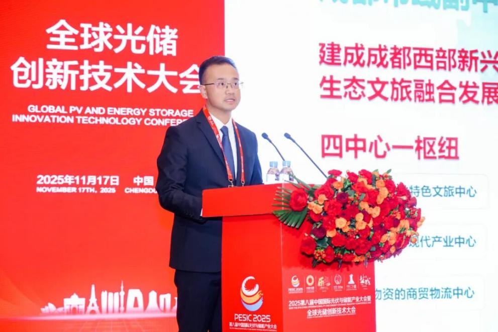 四川邛崃经济开发区党工委副书记、管委会主任张一淼作邛崃投资环境推介。他介绍,邛崃依托良好的产业基础与政策支持,正加快建设光储产业集群,诚邀全球企业入驻,共享发展机遇。