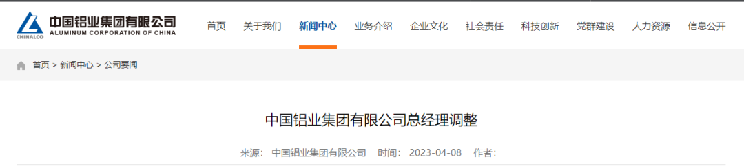 近日,中国铝业集团有限公司召开领导班子会议,会上宣布了中央关于中国铝业集团有限公司总经理调整的决定:按照中央企业领导人员任职年龄有关规定,免去刘祥民同志的中国铝业集团有限公司董事、总经理、党组副书记职务。相关免职按有关法律和章程的规定办理。