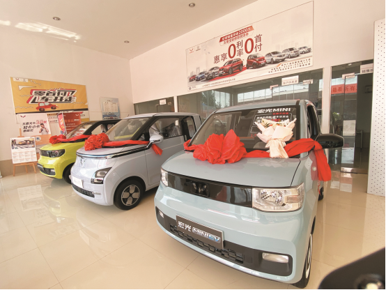 当被问及新能源汽车下乡政策是否会推动店里的销售时,赵俊告诉记者:“五菱汽车一直都卖得很好,有了政策的支持,肯定会更火。在县城里居住、生活,买五菱就对了。大家基本上都是往返县城和乡镇之间。”