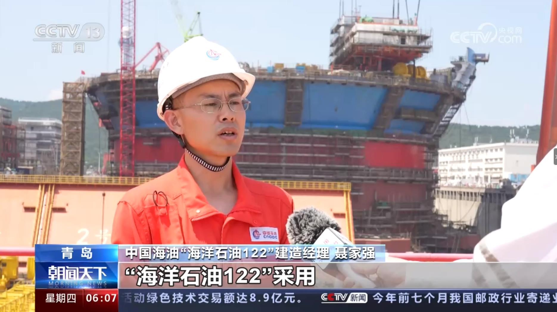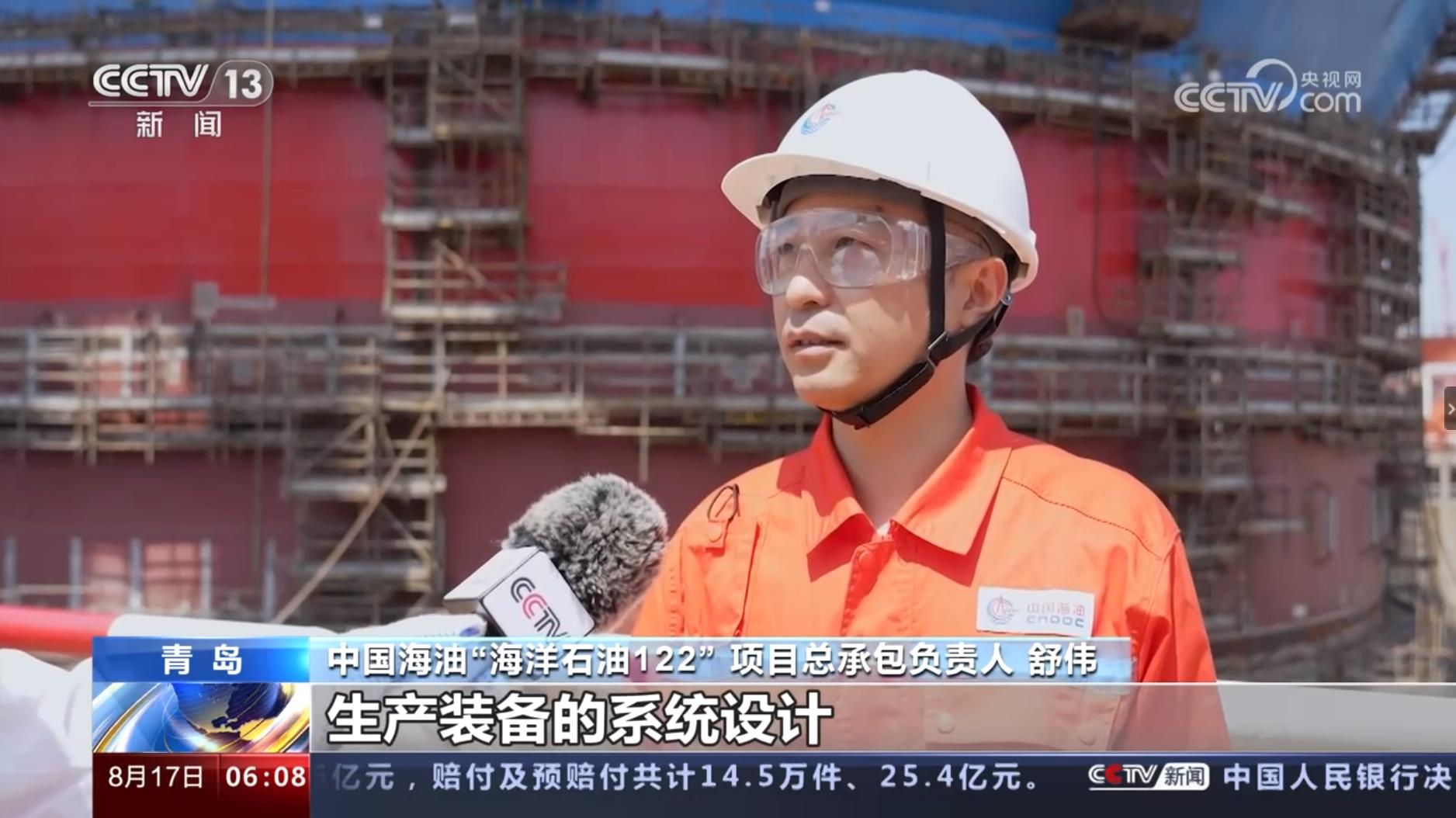 中国海油“海洋石油122”项目总承包负责人舒伟:项目团队攻克了台风海况下的生产装备系统设计、高精度建造等一系列难题,成功掌握8项关键施工技术,创新采用三维模拟搭载等数字化手段,实现船体合龙一次就位成功率100%,尺寸公差不超过6毫米,精度控制达到国际先进水平。