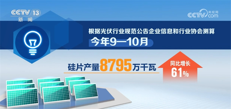 工业和信息化部12月13日发布当前全国光伏制造行业最新运行情况。数据显示,今年9—10月,我国光伏制造业保持高位运行,硅料、硅片、电池、组件产量同比增长均超60%。
