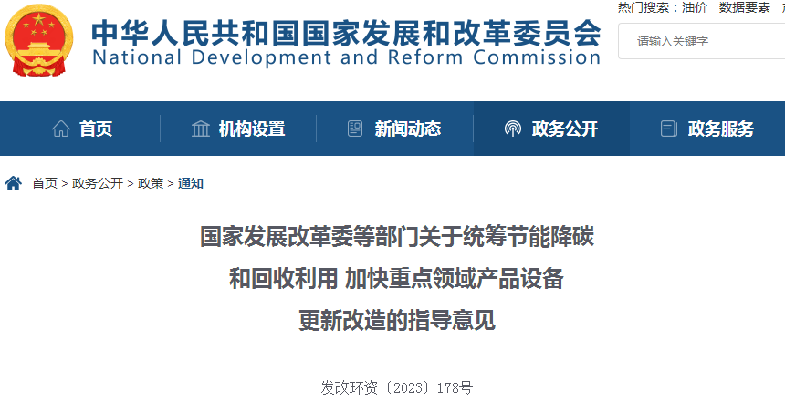 2月23日,国家发改委等九部门发布《关于统筹节能降碳和回收利用 加快重点领域产品设备更新改造的指导意见》(以下简称《意见》)。
