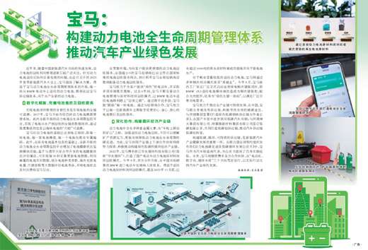 构建低碳、循环、可持续的供应链,是新能源汽车产业健康发展的重要一环。在联合国全球契约组织发布的《动力电池碳足迹及低碳循环发展白皮书》中,宝马作为汽车制造商代表,为白皮书提供了自身实践经验。未来,宝马将继续携手各方合作伙伴,在“电动化、数字化、循环永续”三个方向笃定前行,以实际行动支持汽车产业绿色发展。