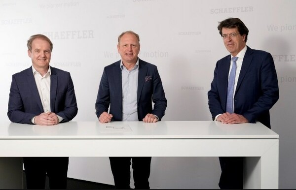 舍弗勒与H2 Green Steel进一步深化合作。从右至左:舍弗勒集团首席执行官克劳斯•罗森菲尔德、H2 Green Steel首席执行官Henrik Henriksson、舍弗勒集团首席运营官安德烈亚斯•希克