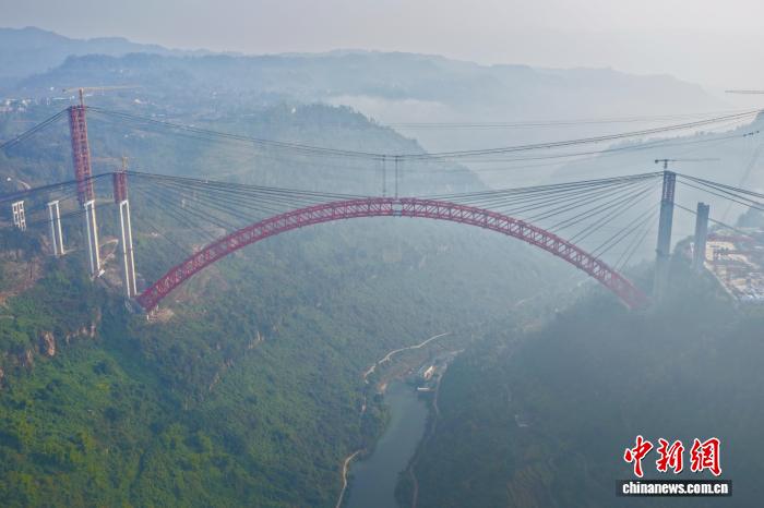 27日,世界跨径最大的钢拱桥——重庆武隆至两江新区高速公路凤来大溪河特大桥钢桁拱成功合龙。