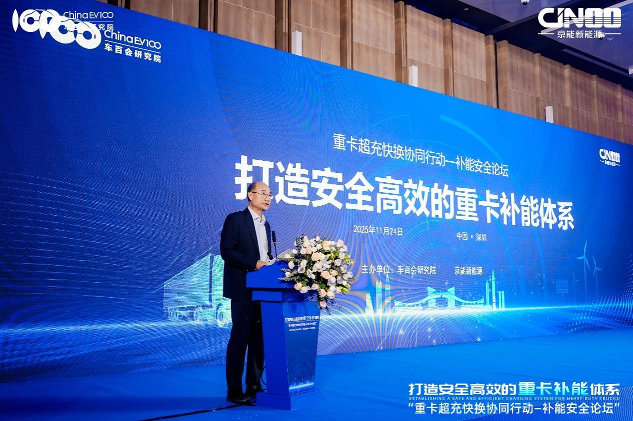 11月24日,由京能新能源与车百会研究院联合主办的“重卡超充快换协同行动-补能安全论坛”,在深圳机场凯悦酒店隆重举行。论坛以“打造安全高效的重卡补能体系”为核心,汇聚了整车制造、电池研发、能源运营、科研院校等领域的精英,围绕着补能安全这一关键议题深入研讨,现场多款创新补能设备同步亮相。