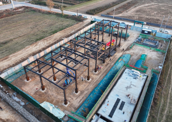 11月26日,在山西临汾尧都高新技术产业开发区,贾得110千伏变电站项目建设正稳步推进。作为工程建设关键工序的综合配电楼钢结构安装已完成80%,施工工期较传统模式缩短约50%。这一成效得益于国网山西省电力公司2024年新技术依托项目——新型模块化梁柱节点技术的成功应用。