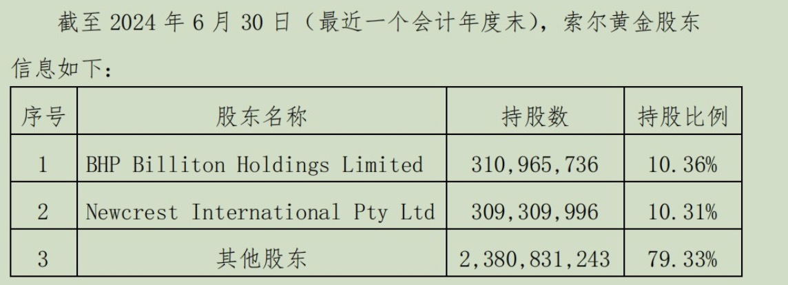 需要强调的是,尽管江西铜业通过增资成为索尔黄金第一大单一股东,但并不拥有董事会席位。