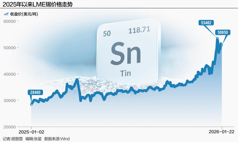 2026年开年以来,锡金属价格大幅上涨,伦敦和上海市场的锡价均一度飙升至历史最高位。
