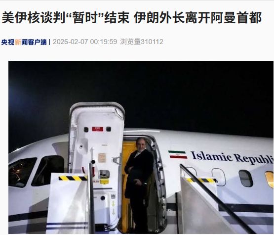 据央视新闻2月7日消息,总台记者获悉,当地时间2月6日晚,在当天举行的美伊核谈判结束后,伊朗外交部长阿拉格齐离开阿曼首都马斯喀特。