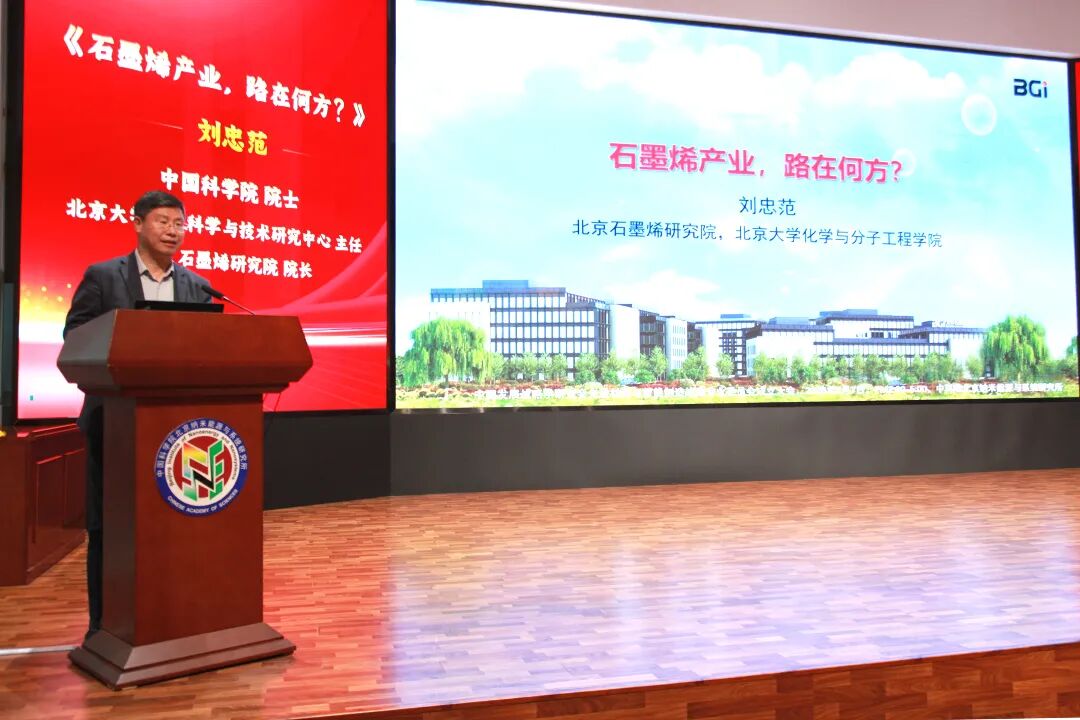 北京石墨烯研究院院长、中国科学院院士刘忠范做了题为“石墨烯产业,路在何方?”的报告,分享了其团队从学术研究到产业化的“产学协同创新”模式,介绍了石墨烯研究院、公司及多个产业基地的发展历程,其产业化产品已成功应用于航空航天、新能源、轨道交通等领域,并取得了显著的商业化进展。