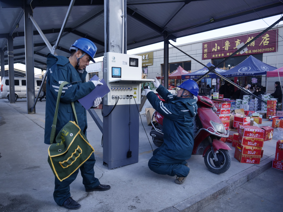 李明琦说,这台终端额定功率2200千瓦,六个插孔可同时供电,集市高峰时段的用电需求完全能满足。往年集市临时用电是老大难,私拉乱接的“飞线”暗藏诸多安全隐患,电价口头议价也常引发纠纷,摊贩自备电瓶还易出现供电不稳的情况。如今,国网大同供电公司在山西率先落地“扫码用电”智慧服务新模式,从源头杜绝了“飞线”用电乱象,让用电更安全、电价更透明。