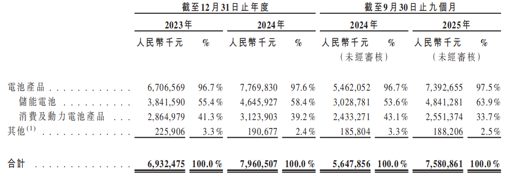 2025年前三季度,鹏辉能源储能电池业务贡献了48.41亿元营收,同比增幅约60%,营收占比上升至63.9%。