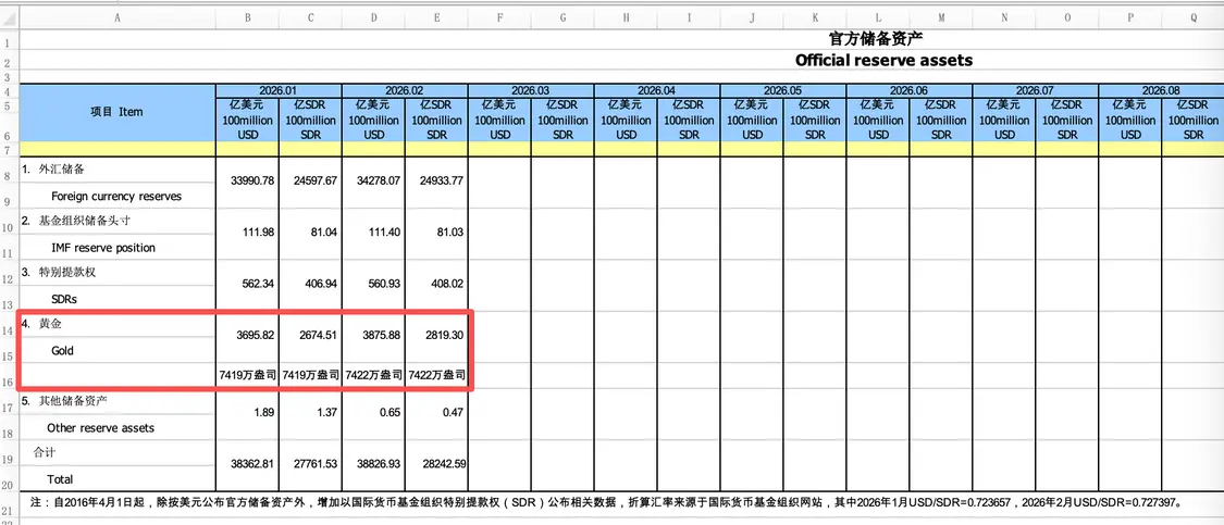 3月7日,国家外汇管理局公布的数据显示,截至2026年2月末,我国外汇储备规模达到34278亿美元,较1月末上升287亿美元,升幅为0.85%,实现连续第七个月增长,且自2025年12月以来首次站上3.4万亿美元关口。同期,央行黄金储备报7422万盎司,环比增加3万盎司。这是自2024年11月重启增持以来,央行连续第16个月增持黄金。
