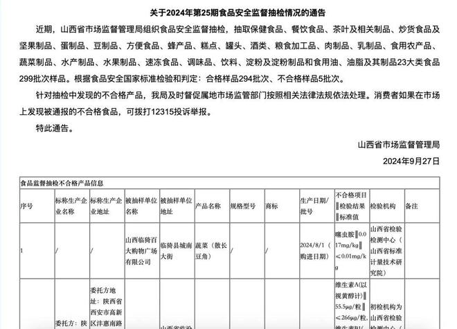 去年9月,山西省市场监督管理局发布了关于2024年第25期食品安全监督抽检情况的通告,近期抽检的23大类食品299次样品中,出现了不合格样品5批次,其中便有西麦燕麦片。