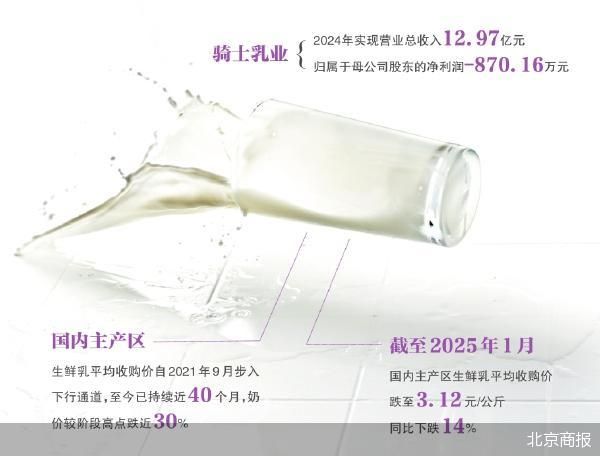 近日,“北交所乳业第一股”骑士乳业发布2024年度业绩快报,并修正了此前业绩预告中净利润部分,同比由盈转亏。此前2021—2023年,骑士乳业连续三个年度营收和净利润双增长,在上市后的次年,骑士乳业业绩突然变脸也是有原因的。业内分析人士指出,随着市场环境变化,奶价持续低迷,上游乳企业绩承压,骑士乳业造血能力不足的问题也凸显出来。