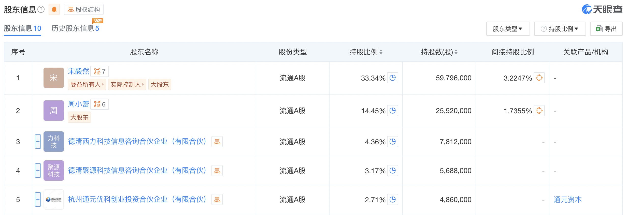 天眼查显示,宋毅然及周小蕾分别为西力科技第一、第二大股东,分别持有公司33.34%及14.45%的股份。