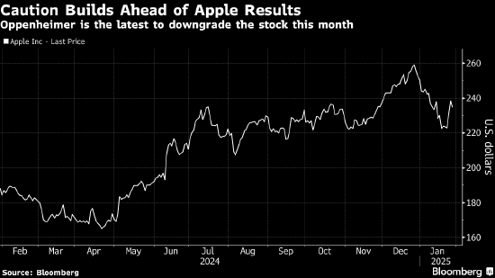 Oppenheimer将苹果公司的评级从跑赢大盘下调至与大盘一致,反映出投资者在该公司业绩发布前心态谨慎。