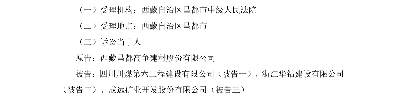 1月9日晚间,高争民爆(002827)发布公告称,公司控股子公司成远矿业近日收到西藏自治区昌都市中级人民法院传票以及出庭通知书,因合同纠纷,西藏昌都高争建材股份有限公司(下称“昌都高争”)向法院提起行政诉讼,涉案金额为1.26亿元 。