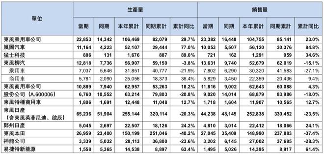 自主品牌方面,上半年东风柳汽累计销量为5.27万辆,同比下滑15.1%;自主板块东风乘用车累计销量为10.48万辆,同比增长23.0%;岚图汽车累计销量为5.61万辆,同比增长84.8%。