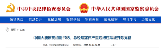经中共中央批准,中央纪委国家监委对中国大唐集团有限公司原党组副书记、总经理寇伟严重违纪违法问题进行了立案审查调查。