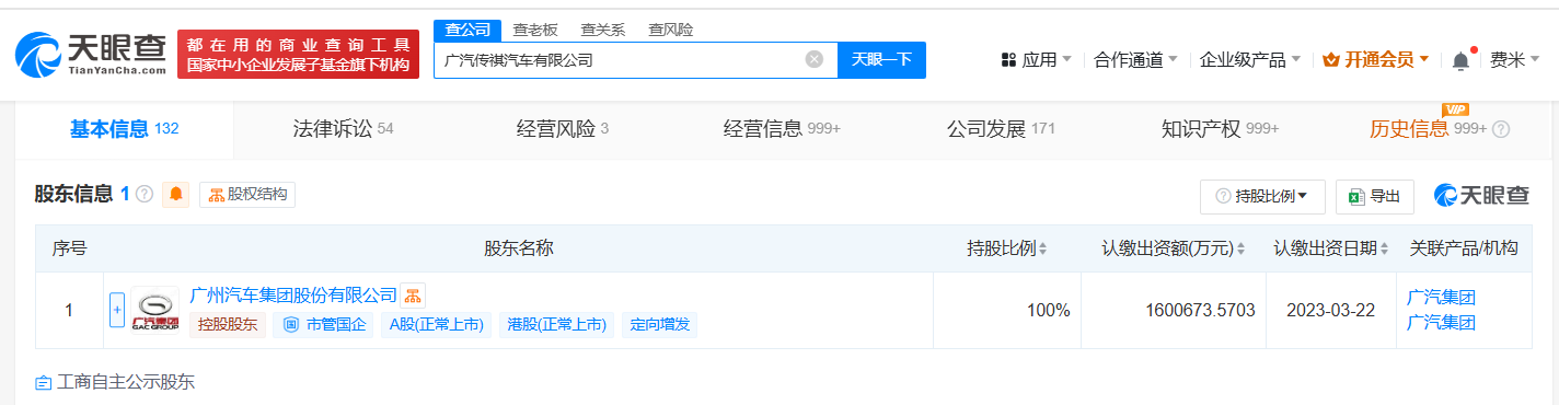 该公司成立于2008年7月,注册资本约160.1亿人民币,经营范围包括电车制造、汽车零部件及配件制造、汽车新车销售、汽车零配件批发、汽车零配件零售、企业管理等,由广汽集团(601238)全资持股。