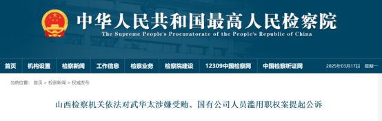 日前,山西焦煤集团有限责任公司原党委书记、董事长武华太(正厅级)涉嫌受贿罪、国有公司人员滥用职权罪一案,经山西省人民检察院指定管辖,由山西省人民检察院太原铁路运输分院依法向太原铁路运输中级法院提起公诉。案件正在进一步办理中。