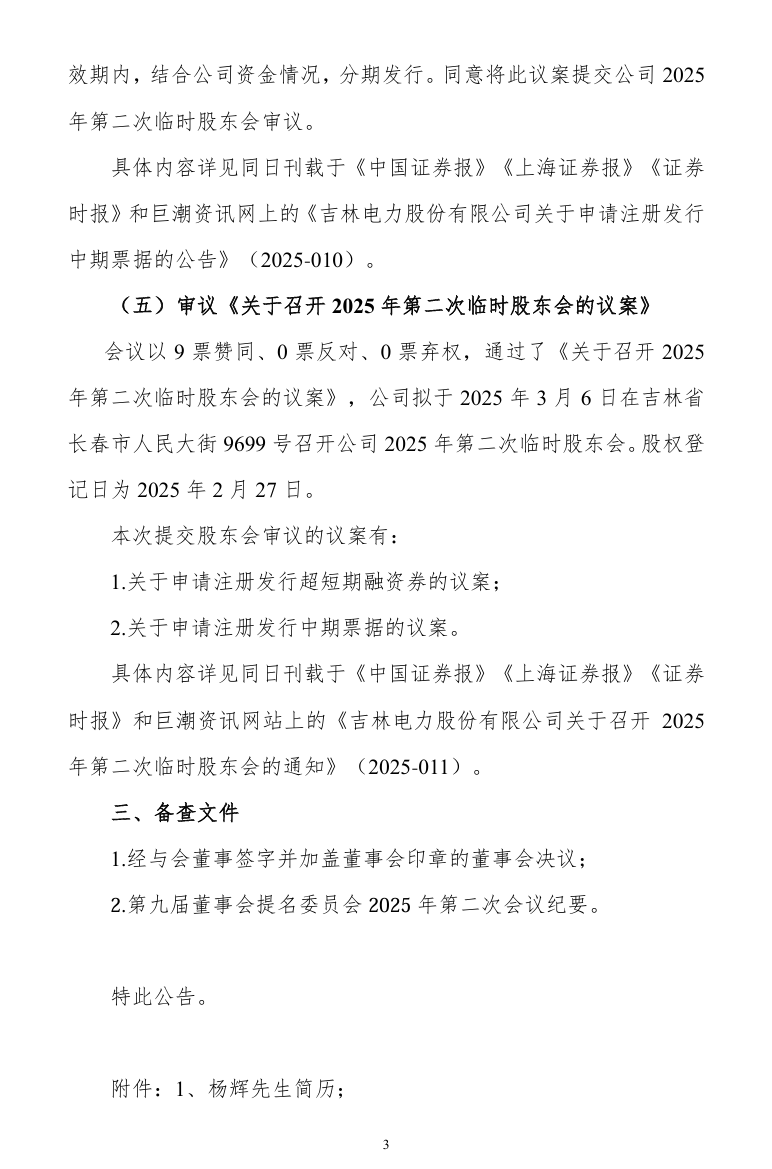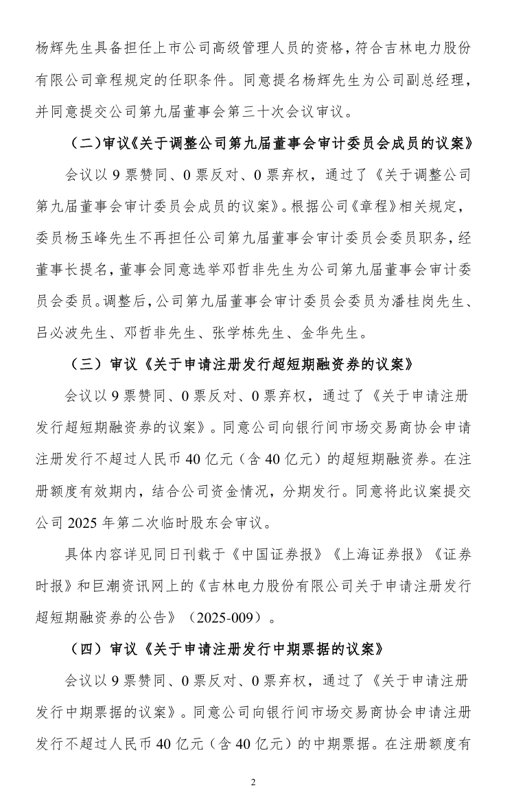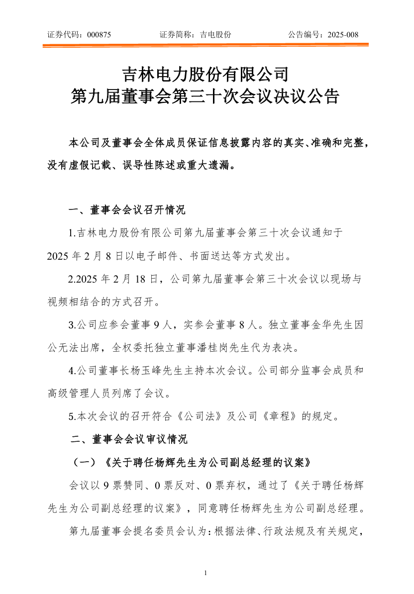 2月18日,吉电股份发布公告称,公司第九届董事会第三十次会议审议通过了《关于聘任杨辉先生为公司副总经理的议案》,同意聘任杨辉先生为公司副总经理。