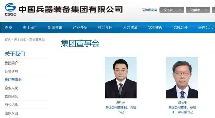 2月17日,中国兵器装备集团官网“集团董事会”栏目更新内容显示,周治平已任中国兵器装备集团公司董事、总经理、党委副书记。