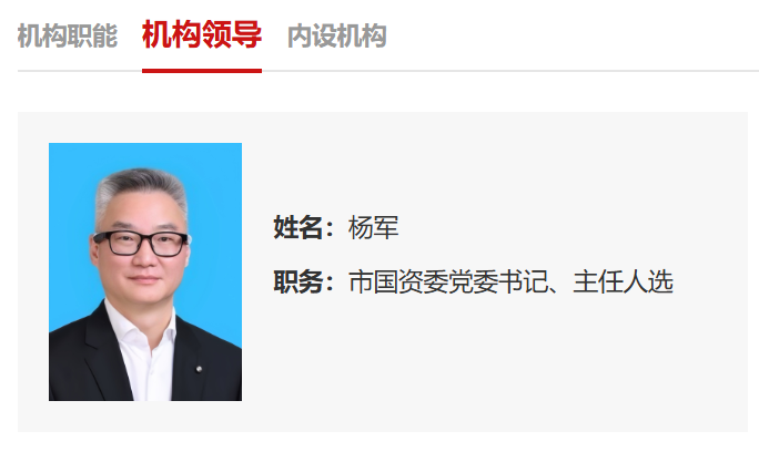 深圳市人民政府国有资产监督管理委员会官网“机构领导”一栏最新信息显示,杨军已担任深圳市人民政府国有资产监督管理委员会党委书记、主任人选。