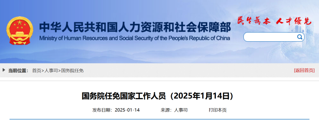 人社部网站1月14日消息,国务院任免国家工作人员。