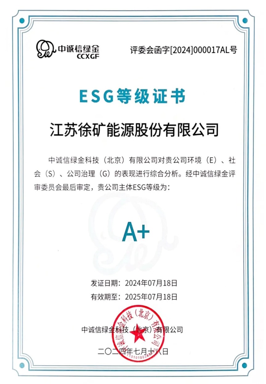 苏能股份切实将ESG理念融入公司经营发展全过程,推动公司各部门和所属企业将ESG理念和要求融入日常生产经营管理中。全面提升上市治理,加强内控制度优化,完善内部控制体系,“三会”治理高效运作。连续两年荣获3A最高信用评级,入围中国上市企业市值500强,成功进入“中证500”指数,入选《2024煤炭行业上市公司发展报告》实践案例;取得ACCA专业发展类认可雇主资格,获评江苏省“2024年度优秀投资价值企业”、煤炭工业节能减排先进单位等荣誉称号。