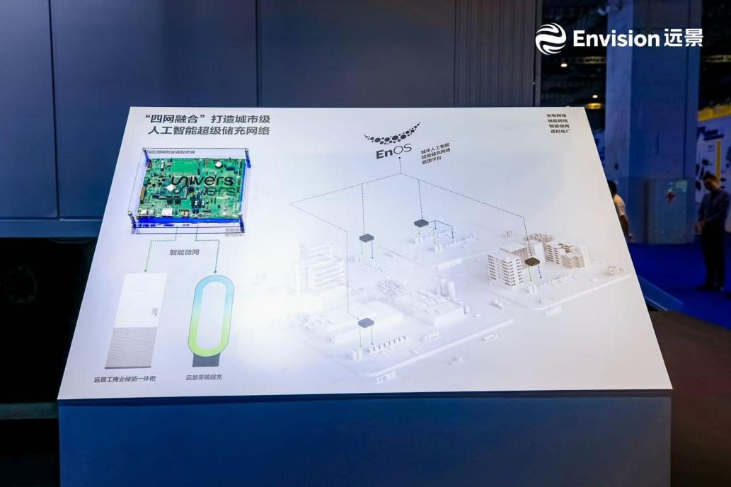 本次展会中,远景零碳综合能源业务发布重磅网络级新品——人工智能超级储充网络,将储能、充电、人工智能调度与电力交易深度协同,打造 “四网融合”的智慧能源生态系统。其中,超快充网络为新能源汽车高效补能,储能网络以削峰填谷缓解电网冲击,智能微网用于调控分布式能源、储能与负荷,而虚拟电厂可通过聚合多元分布式可调资产参与电力市场交易。