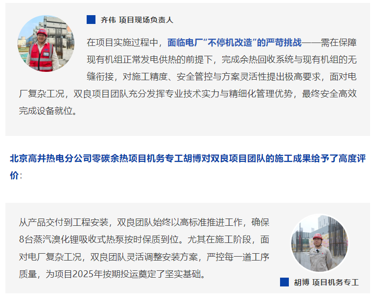 继天津陈塘热电厂烟气余热项目后,大唐国际高井热电烟气余热回收项目是双良在工业余热回收领域的又一标杆工程,不仅验证了双良溴化锂技术在大型热电联产机组改造中的成熟性,更为城市热电企业节能改造提供了可复制、可推广的“双良工程”,推动更多传统电厂向绿色综合能源服务商转型。