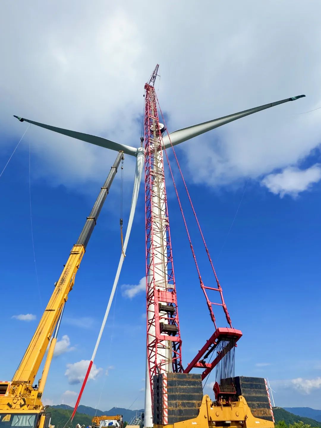 近日,由内蒙古兴蓝风电有限公司承接的贵州某风电场XE105机型“以大代小”等容量升级改造项目风机吊装工作顺利完成。该项目的成功实施,为复杂山地风电场提质增效提供了示范样本。