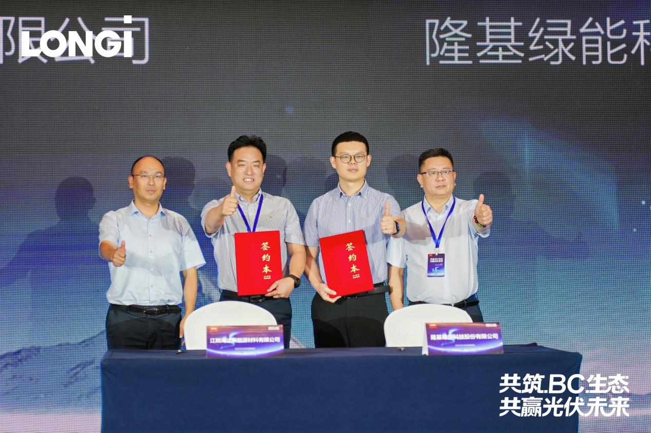 峰会上,拉普拉斯新能源科技股份有限公司、陕西星北新能源科技有限公司、江阴海达新能源材料有限公司签约加入隆基“众行者计划”,成为BC生态的重要成员,与隆基在共同的创新目标基础上并肩研发、生产,以实现互利共赢。
