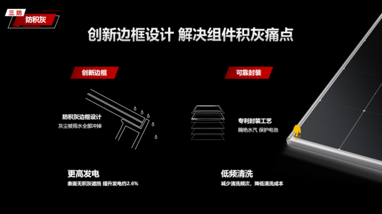 同时,据专业人士介绍,TOPCon技术因对水汽较为敏感,无法做单玻组件,在现有防积灰边框技术条件下,很难避免微量水汽渗入,从而导致DH失效的风险,甚至还会导致组件迅速衰减。所以,“防积灰组件”已经成为隆基BC组件的代名词。“买防积灰选隆基”的观念已经深入人心,并在业主端产生良好的口碑效应。