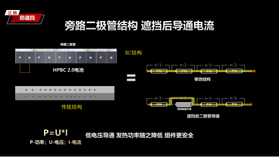 防遮挡功能:组件遮挡导致形成“热斑”,“热斑”是影响光伏组件输出功率和使用寿命的重要因素,最终导致光伏组件局部烧毁形成暗斑、焊点熔化、封装材料老化等永久损坏。