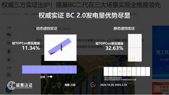 以隆基在全国多地的实证电站为例:国家光伏质检中心(CPVT)银川户外实证基地对Hi-MO X10“三防”组件和TOPCon组件进行了为期两个月的权威测试,最终显示Hi-MO X10“三防”组件较TOPCon单瓦发电增益高1.88%;位于西安的隆基总部屋顶实证电站显示,Hi-MO X10“三防”组件单瓦发电增益比TOPCon高2.73%;隆基在四川绵阳的第三方客户实证案例显示,6月12日SNEC展会当天,Hi-MO X10“三防”组件单瓦发电增益比TOPCon高达13.8%。