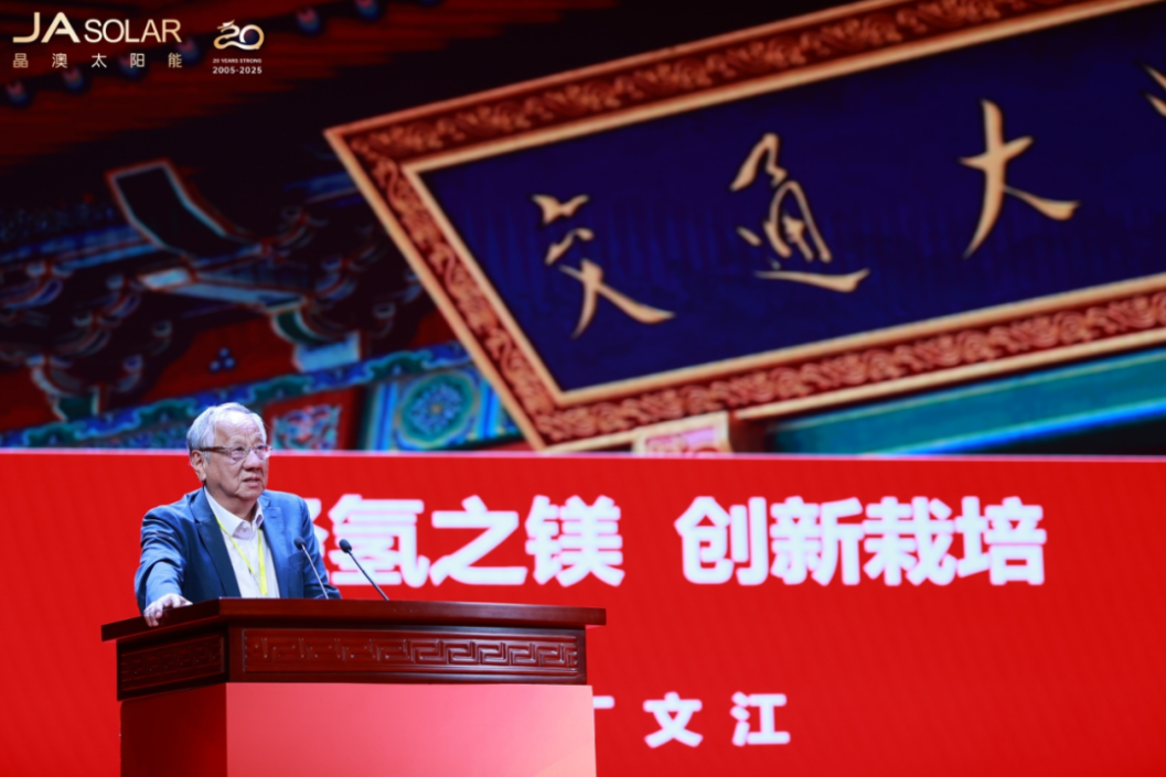 中国光伏行业协会名誉理事长王勃华作《关于光伏行业发展形势的报告》主题演讲,分析了当前光伏行业的挑战与机遇,未来光伏新增装机需求仍将处于高位,需通过行业协同、良性竞争、技术创新等,推动光伏产业高质量发展。