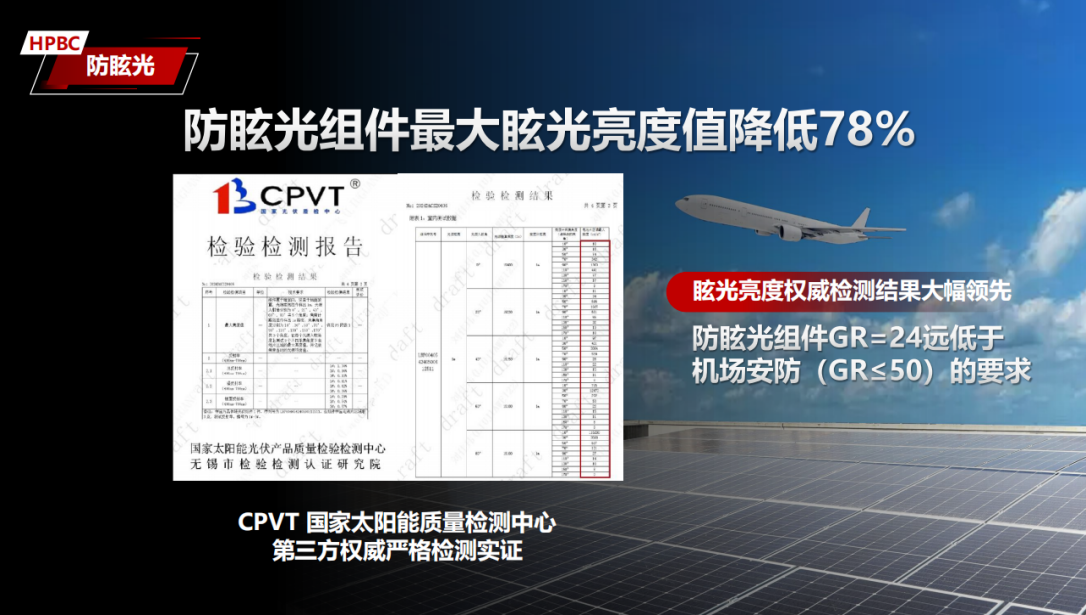 国家光伏质检中心(CPVT)对BC组件眩光亮度的检测报告