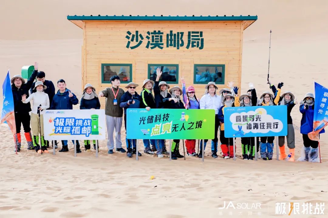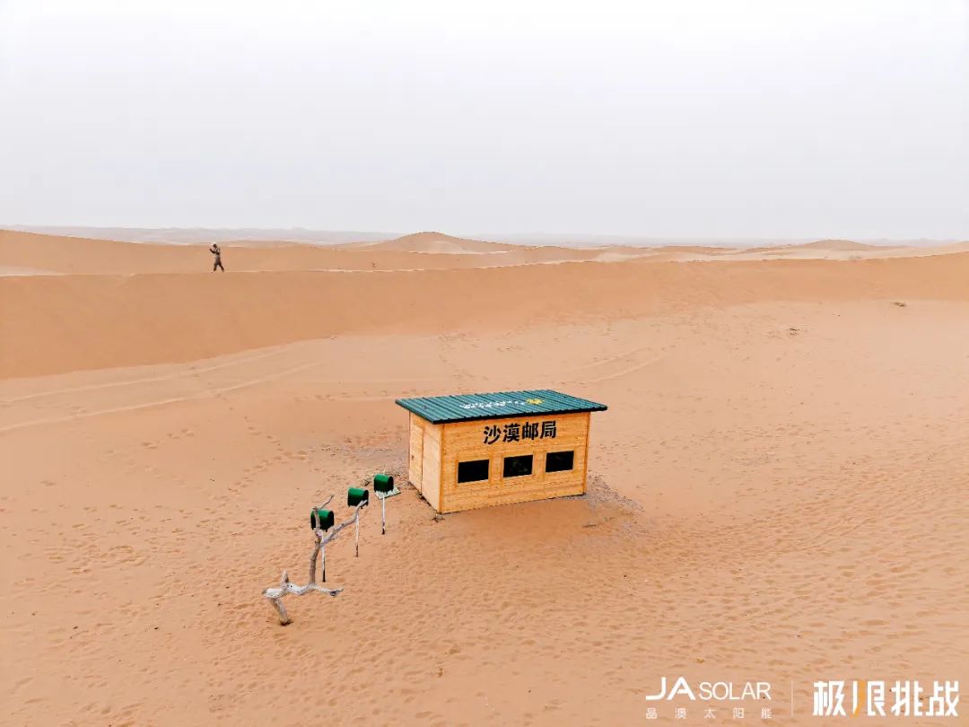 当光伏极限挑战团的成员们抵达这座被黄沙环绕的孤岛时,邮局旁的光伏板正在阳光下熠熠生辉。邮局工作人员轻触电灯开关的瞬间,暖色的灯光轻轻照亮了桌案上待寄的书信——这是腾格里沙漠腹地的“绿电之光”,也是晶澳科技“以光治沙”理念最温暖的注脚。