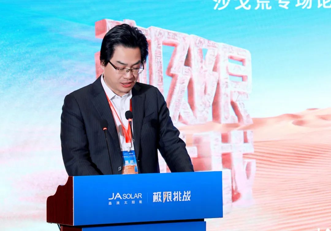 上海交通大学太阳能研究所所长沈文忠致辞表示,数千年来,沙漠都是人类已知最危险的环境之一,在沙漠中应用光伏绝不是容易的事。沙漠地区高紫外、高载荷、强沙尘、大温差等恶劣的地理气候条件,对光伏系统的破坏非常明显。但中国光伏企业始终对此孜孜以求,探索高效解决方案,尽最大可能发挥沙漠光伏的技术、生态与商业价值,晶澳科技正是其中佼佼者。在行业一致努力下,曾被视作“不毛之地”的荒漠,正在成为新能源革命的战略高地。