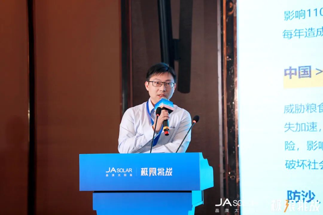 晶澳科技光伏与储能BG总裁祝道诚在开场致辞中表示,当前,全球光伏装机已跨越2太瓦里程碑,基于庞大的存量与高增量趋势,未来光伏新能源势必要深入以往难以涉足的极端地理气候环境。围绕这一前景,晶澳科技聚焦沙漠、深海、极地等重要应用场景展开技术攻坚,收获了一系列重大成果。其中针对沙漠场景,晶澳产品在材料科学与系统工程方面不断突破,参建了全球诸多标杆项目。期待未来可以与更多合作伙伴进一步开创光伏治沙与生态增益的协同范式。