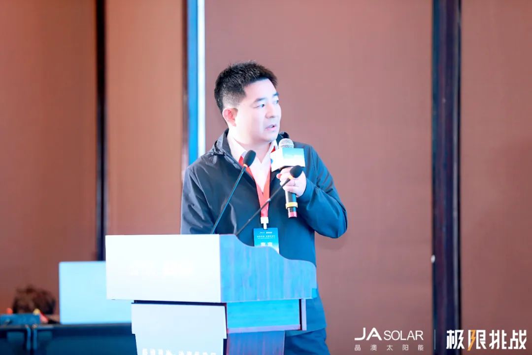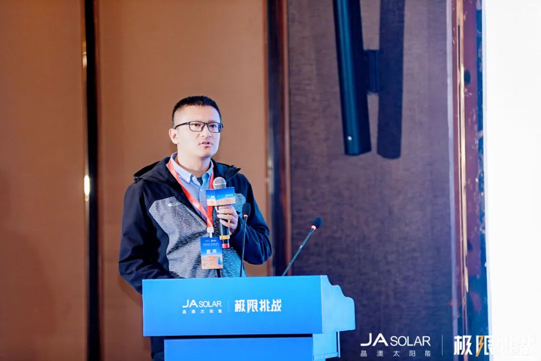 朱召义就海外沙漠光伏项目开发情况做出实战分享,他表示,中东地区地理气候条件严苛,辐照量相对拉萨、温度相对三亚、风速相对内蒙,均呈现更高数值,因此系统设计和光伏产品质量皆要更加严格。在中东项目实际运营期间,有些问题值得行业注意,一是清洗机器人常见脱轨问题,二是地面反光层易积累风沙降低反光效果,三是不同尺寸组件玻璃有不同破裂形式,尚不知如何管控,期待行业同仁携手攻克难题,为沙漠光伏高质量发展献计献策。