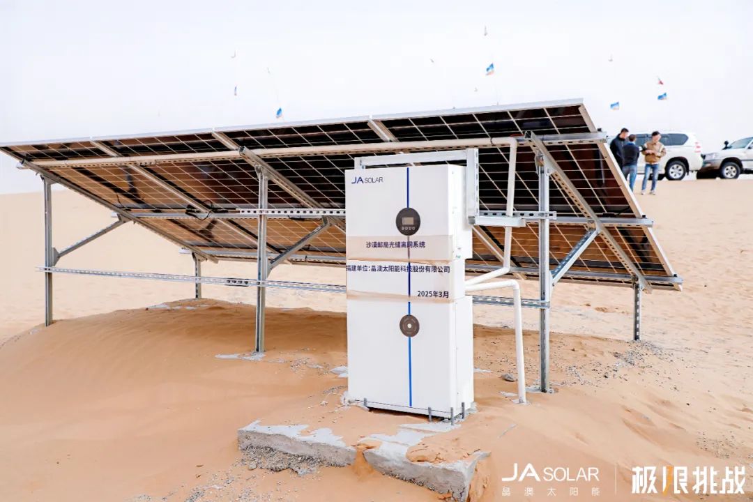 2025年3月,由晶澳科技捐赠的光储系统成功落地沙漠邮局,该系统选用DeepBlue 4.0 Pro旗舰光伏组件+Bluestar户用光储一体机,这套组合无惧高紫外、高载荷、强沙尘、大温差,始终可以发挥最佳状态,终结沙漠无电时代。