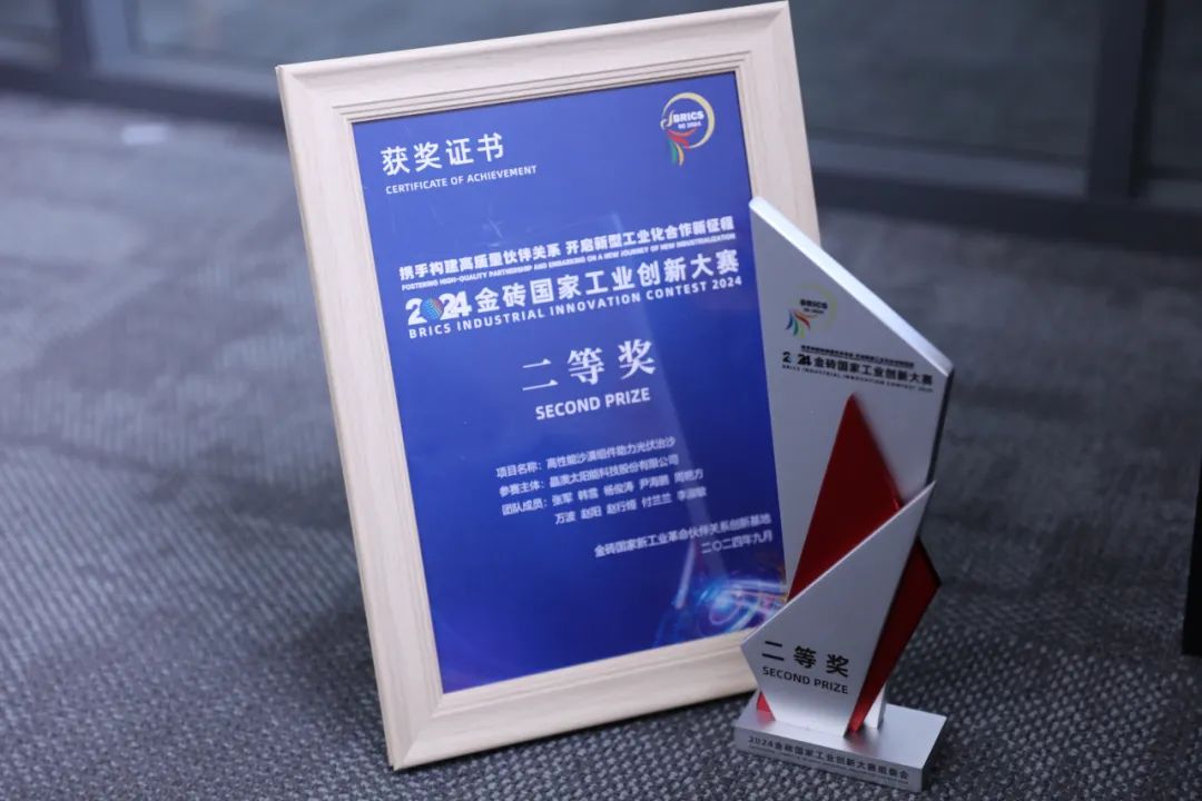 2024年,在金砖国家工业创新大赛中,300多家企业、高校及科研院所围绕“能源电子—光伏+新型储能”赛道展开角逐,晶澳科技凭借“高性能沙漠组件助力光伏治沙”项目,在所有头部光伏企业中脱颖而出,取得最好成绩,荣获该赛道二等奖。目前项目已被纳入“金砖国家工业创新合作项目库”,向金砖国家做定向案例展示。