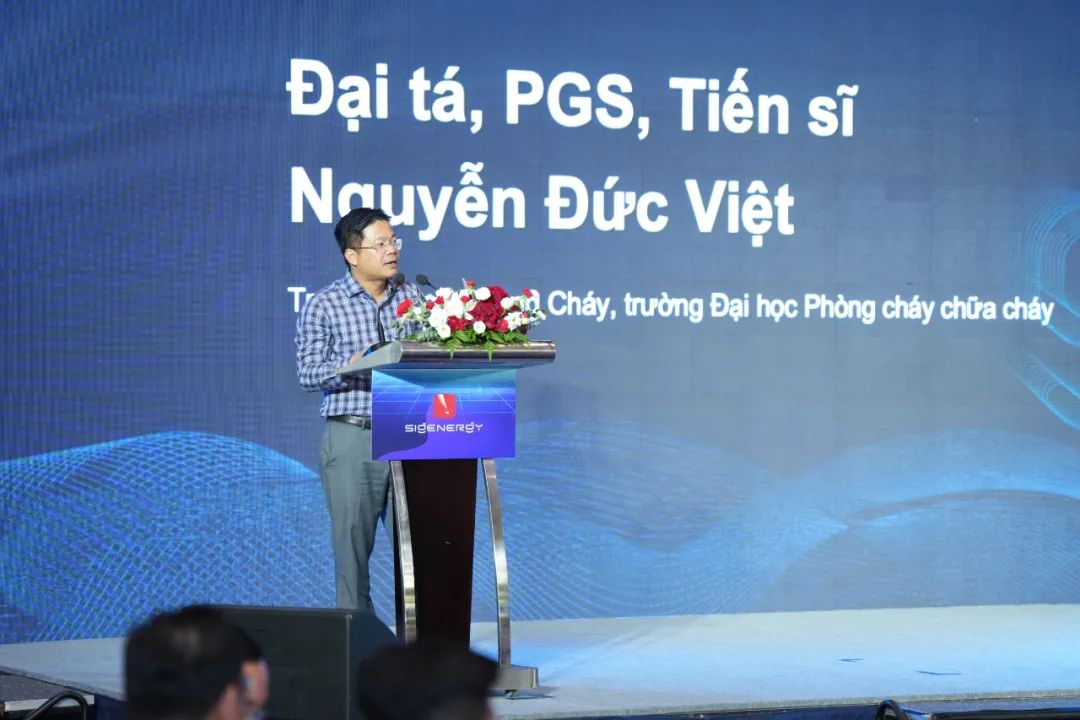 思格产品在安全性方面的出色表现也获得了在场嘉宾的高度评价。越南消防大学消防系主任、上校Nguyen Duc Viet博士在演讲中指出,随着光储系统在越南快速普及,安全问题必须被提到新的高度。“思格的系统在安全设计方面做得非常专业,整体架构严谨,实现了系统性能与安全保障的有机结合。”Nguyen Duc Viet评价道。